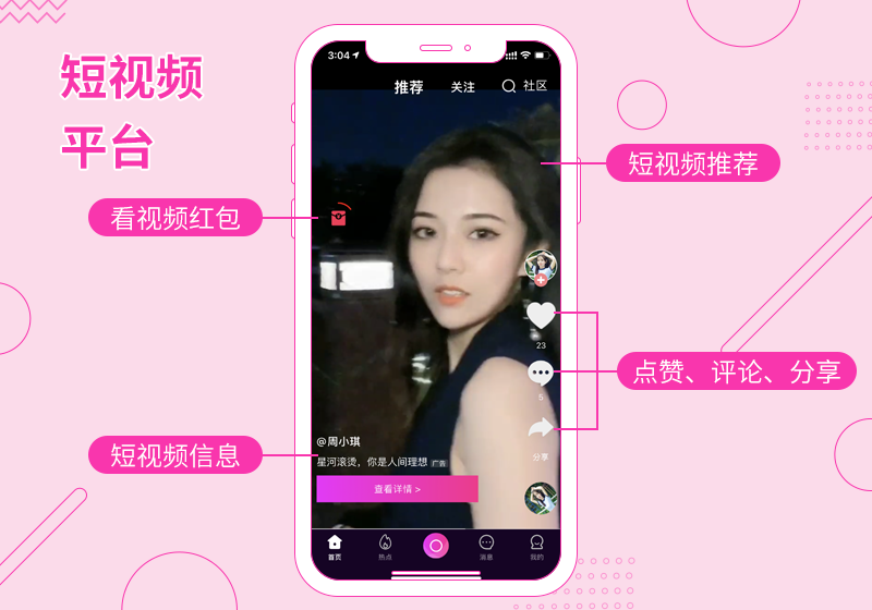 创新是成功的关键!我们将为您的短视频社交系统加入弹幕互动、标签话题、视频特效等创新功能,让您的平台充满吸引力和活力,引来大量用户互动和分享!