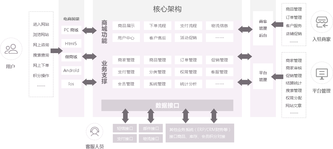 结合企业真实运营场景 量身打造合理电商开发方案 代码质量保证 源码交付基于成熟全终端电商系统提供商城网站开发、企业商城建设、APP商城、微商城、小程序商城开发定制服务